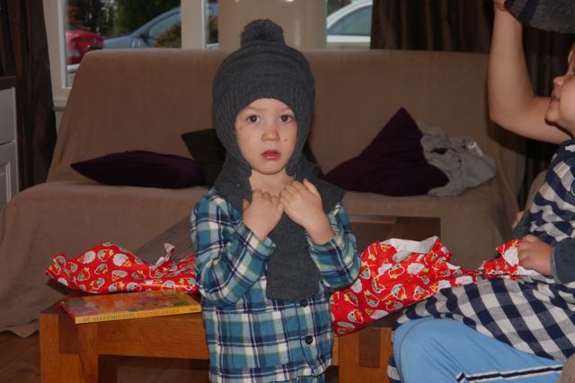 Die kwam een paar minuten later binnen en zei dat hij wel een Piet op een paard had zien wegrijden. Dát hebben wij dan weer niet gezien! Dan gaan we beginnen. Pakjes uitpakken en dat is gaaf. Dat is zo leuk dat je amper kijkt naar wat er in het papier verstopt zit! Nee, uitpakken en doorgaan! Ik denk dat het minstens zo leuk is gewoon 50 pakjes uit te pakken, zonder dat er echt wat in zit… Misschien een idee voor volgend jaar!?