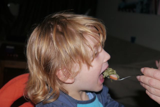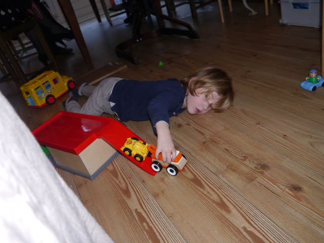 Maar toen ik weer opstond was ik chagrijnig… Echt waar! Ik moest huilen, was zeurderig en vervelend. Gelukkig had papa nog brood meegenomen en dacht mama er aan om het me te geven en dat was dat. Ik had gewoon honger! Daarna was ik een superdreumes! Lekkeer lopen, spelen, en… Stofzuigerrijden! Dat is een mooi avontuur. Het is een vervelende baan, maar iemand moet het doen. Jay de stofzuigerrijder, wie weet…