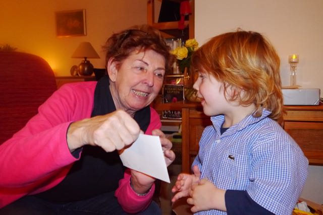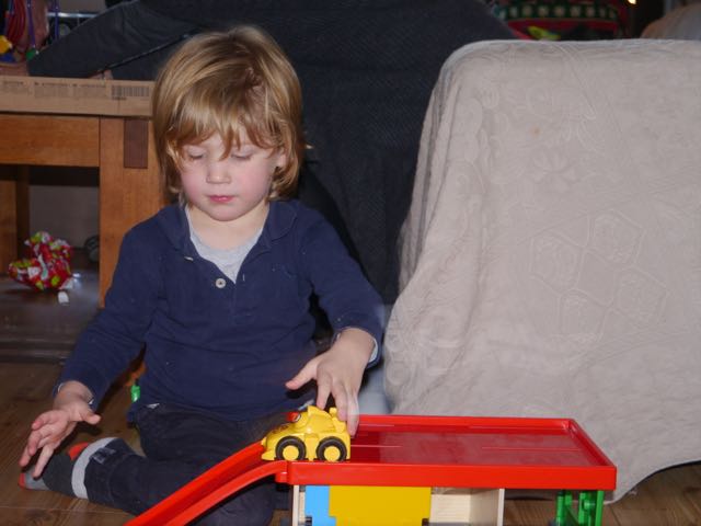 Ik heb naast allemaal cadeautjes die ook heel mooi zijn een heel mooi plastic, opklapbaar telefoontje gekregen van nog geen 1 Euro, en dat is het allereinde. Daar kun je goed de hele wereld mee bellen en het maakt nog geluidjes ook… Jaja, kleine jongens worden groot!