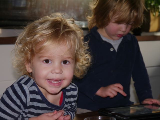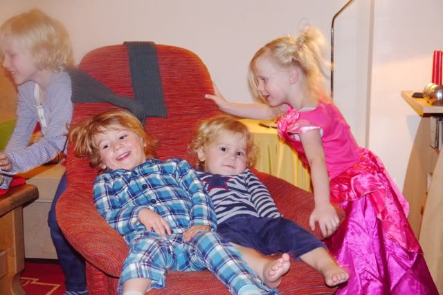 Ik heb geen idee waar iedereen mee bezig is, behalve dat het reuzegezellig is (behalve de poes bij Tessa, want dat was een notoir huilmomentje!). Leuk hoor bij Beppe met Senn en Nynthe en ik kan laten zien hoe goed ik al kan lopen en kletsen!