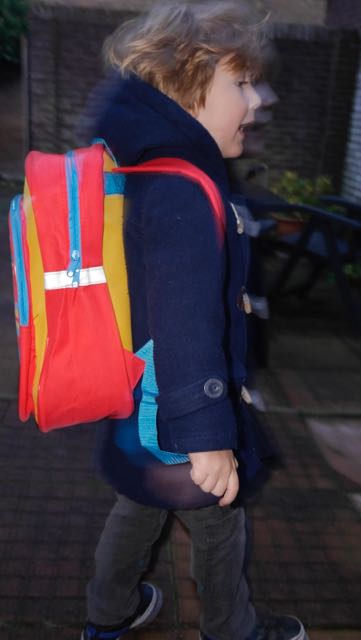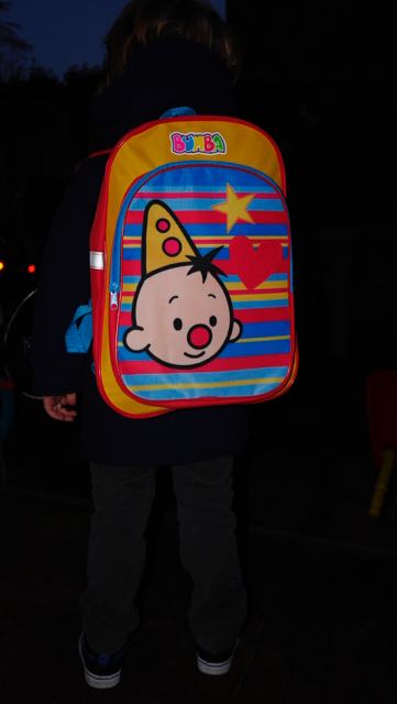 Op woensdag mocht ik naar school voor alweer een wendag! Daar kan ik niet genoeg van hebben vind ik, hoewel ik de juf nog niet recht in de ogen durf te kijken als we binnen komen (daarna wel hoor!) Ze vindt dat ik totaal geen moeite heb met integreren en mee doen en aanwezig zijn, nou dat vind ik ook, alsof ik het al jaren doe! Laat 4 januari maar komen. Ik ben er helemaal klaar voor. Zeker nu, met mijn nieuwe rugzak die ik op mijn verjaardag heb gekregen. Daar past ons hele huis wel in en dan nog is er ruimte voor een paar extra boterhammen.