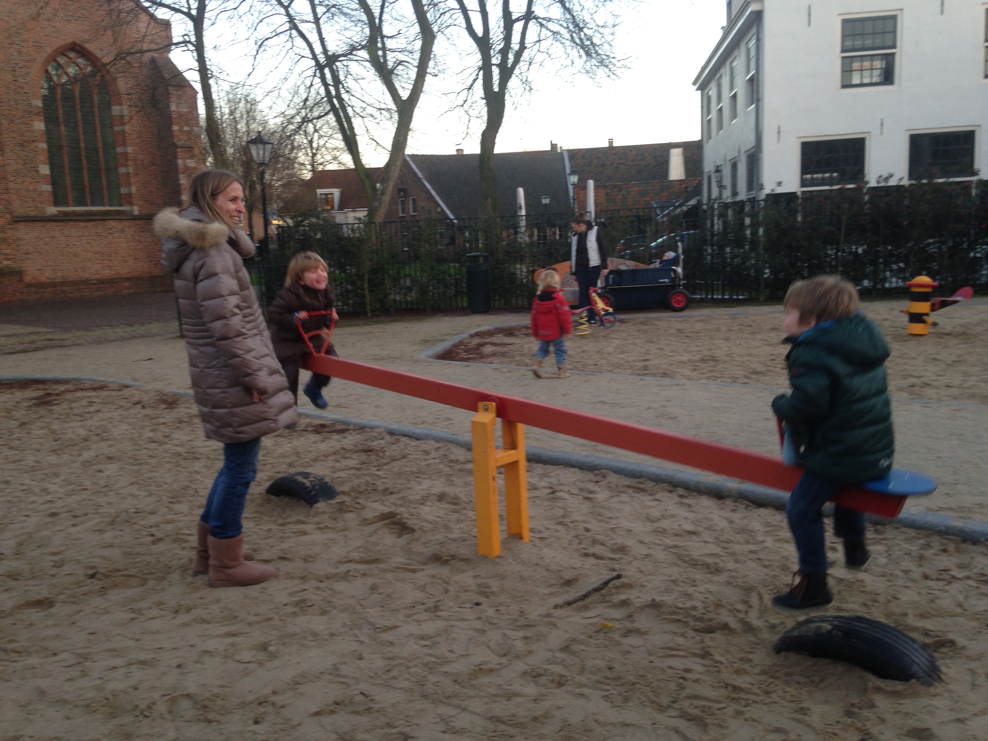 Maar goed, samen terug naar huis, met spelen met Wouter en Julia in het verschiet. Dat had de moeder van ze gezegd deze ochtend, met veel enthousiasme en overtuigingskracht. Spelen in de speeltuin van de Vesting. Dan kun je niet anders. Achter de kerk. Op de bakfiets er naar toe…