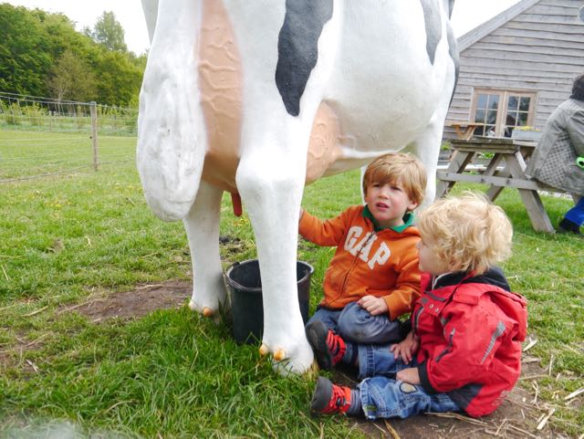 Daarnaast is er een nepkoe met rubberen uiers waar echte melk uitkomt! Laat dat nou net het drankje zijn waar ik superdol op ben!