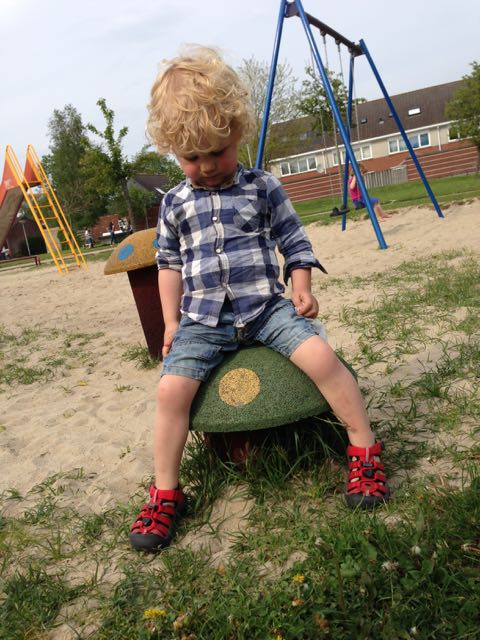Ik heb daar in de speeltuin een soort klimrek, dat eigenijk bedoelt is om ballen door te schieten, maar ook heel goed als roetsjbaan kan dienen. Mama helpt me daar dan altijd op en ik roetsj er dan af. Nu was ik met papa en die benadert dit soort dingen altijd anders. Die kijkt wat ik doe en hoe het kan, om vervolgens het traject bijna uit te tekenen met mijn eigen ledematen en ondanks de kleine aarzeling en de bedompte piepjes-van-protest hier en daar lukte het! #trots