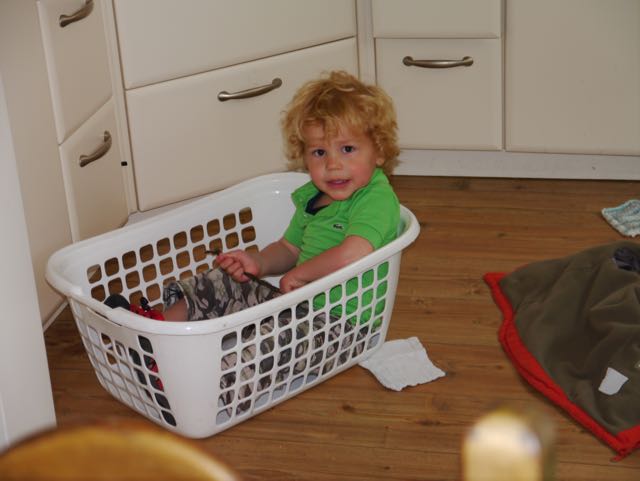 Eerst even goed ontbijten, want als we een reis gaan maken, doe je dat het best op een volle maag. Wat ook belangrijk is, is even my-space, oftewel even een ruimte voor mezelf. Dan kan ik een beetje mediteren en dat doe je het allerbeste in een wasmand. Probeer het maar eens (als je een mand vindt waar je in past).