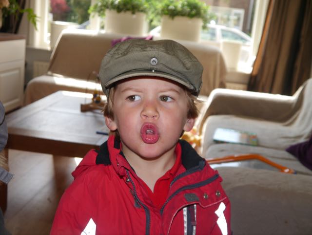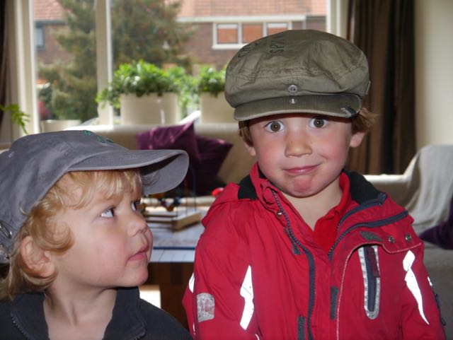 Deze ochtend was ik blij dat ik wakker werd (en het was vroeg!) want pas als je wakker bent, kun je andere avonturen beleven (papa zei laatst dat ik praat in min slaap) en vandaag gaan we naar Bussum om laarsjes te kopen! Met mama in de bakfiets en Jay had een pet op. En als Jay een pet op heeft moet ik dat ook. Jay is een gangmaker! Uiteindelijk hebben we niet alleen regenlaarsjes gekocht, maar ook een regenpak. Nu kijk ik de hele dag naar de wolken in de hoop dat het HARD gaat regenen. Want dan kunnen we als de wiedeweerga naar buiten en als gelaarsde olifanten door de plassen stampen. Op die manier kunnen we de regendruppels terug naar de hemel spetteren. En dat is een mooi idee.