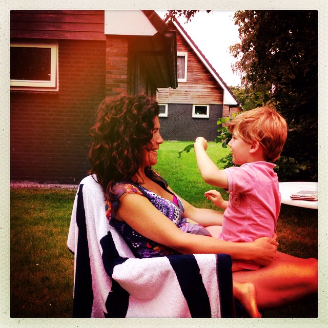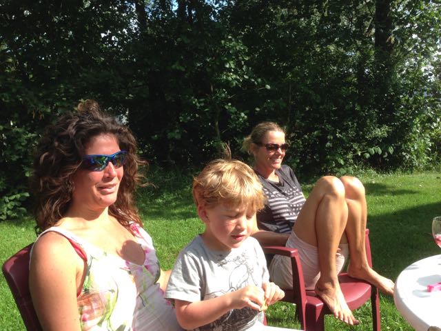 Heb ik ook even rust…. Als Jay dan weer wakker is, gaan we eerst weer even zwemmen en dan even naar de buurvrouw om dag te zeggen, door het huis te banjeren en een bos bloemen geven. We konden namelijk op de markt voor 1 Euro een extra bos uitkiezen, dus dat doen we dan hè! Zo maar, omdat het leuk is.