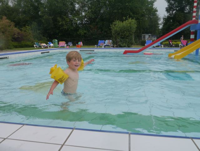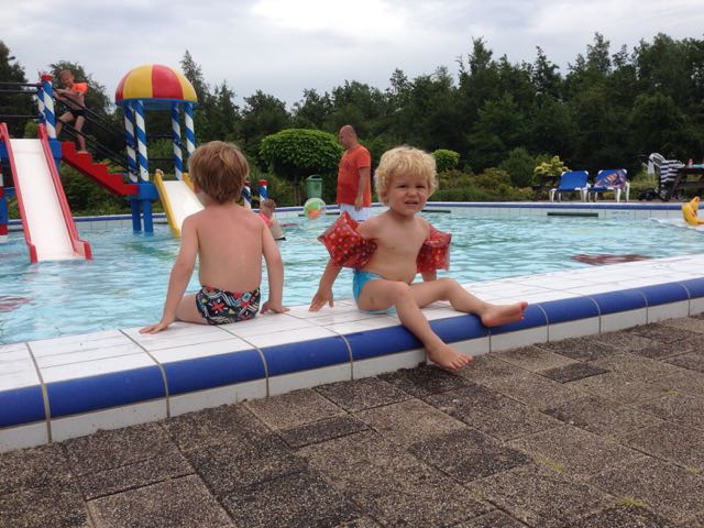 Ik heb een bal gevonden en ben vastberaden de bal mee te nemen naar huis en loop, nadat papa het zwembad heeft gevonden, al dribbel met de bal aan m’n voet achter ze aan. “neej Jay” zegt Dzjez, “dat mag niet”. Niet leuk! Maar gelukkig hebben we het zwembad en als we buiten komen zien we een hele grote trein voorbij rijden! Een vrachttrein met wel 100 wagentjes! Dat is wat anders dan die 7 wagentjes van het machinistje dat aan de wieletjes draait!