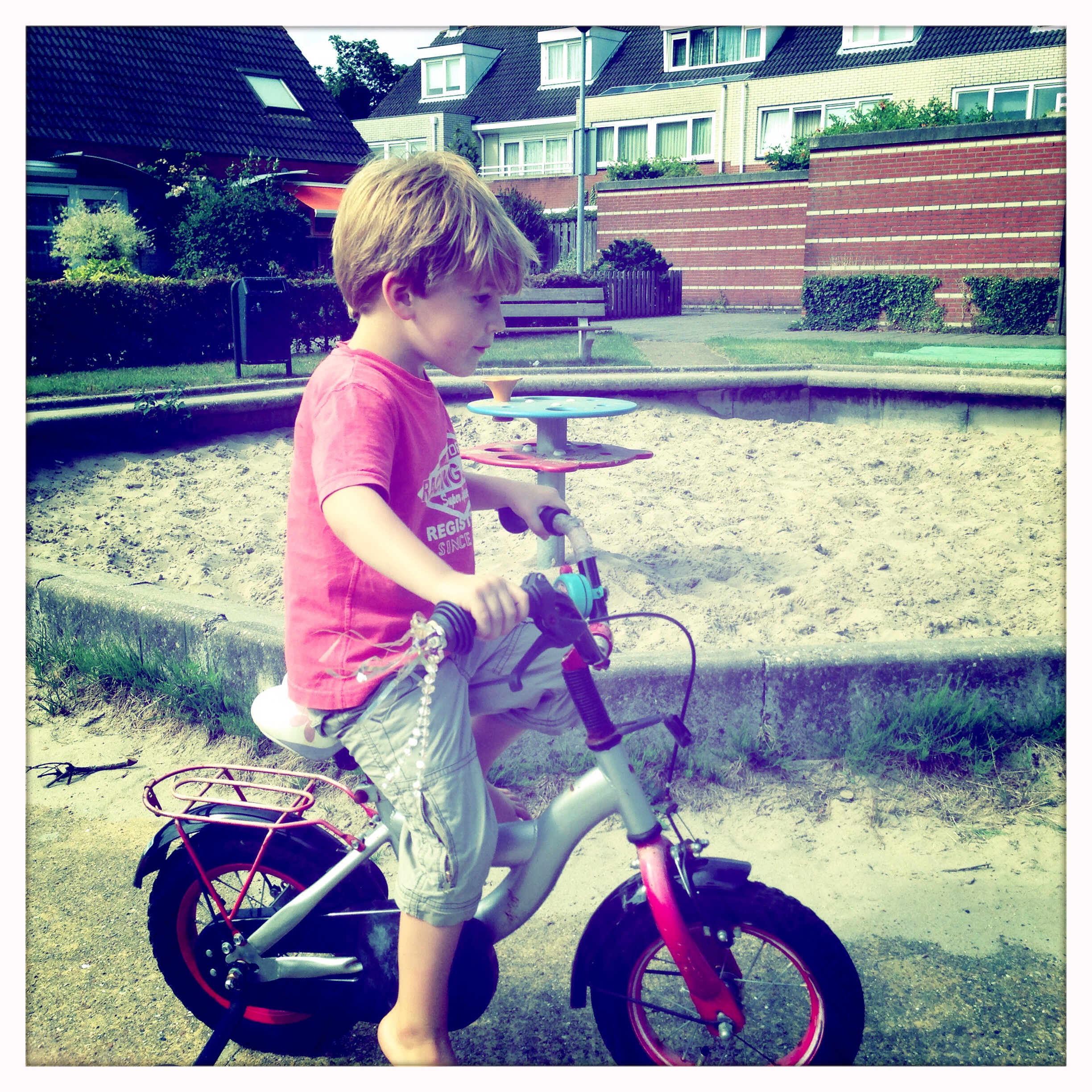 Daarna gaan we naar de speeltuin. Bepakt en bezakt met emmertjes, schepjes, een voetbal en mijn fietsje. Eerst in de ene speeltuin en dan in de andere. Alletwee leuk, maar anders, dus beide moet je ervaren. Op de glijbaan, de schommel, in de zandbak, de andere glijbaan, de wipper, de ligschommel en dan gaan we weer terug naar huis. En daar zijn mama en Zelda voor een tussenstop. Ze waren blij en opgelaten, want na zoveel paleis ben je vrolijk. Bovendien hadden ze leuke dingetjes gekocht in de kringloopwinkel. Voor mij een echte Mickey Mouse!