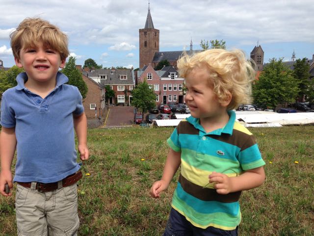 Wij gingen naar de markt. Boodschappen doen, rozijntjes krijgen en wandelen op de heuvels. Ik heb het hele rondje deze keer zelf gelopen! Ik heb maar één keer gevraagd ‘dragen’ en toen papa resoluut nee zei, heb ik m’n kladden opgepakt en ben gewoon gegaan. over de paden, langs de bloemetjes….