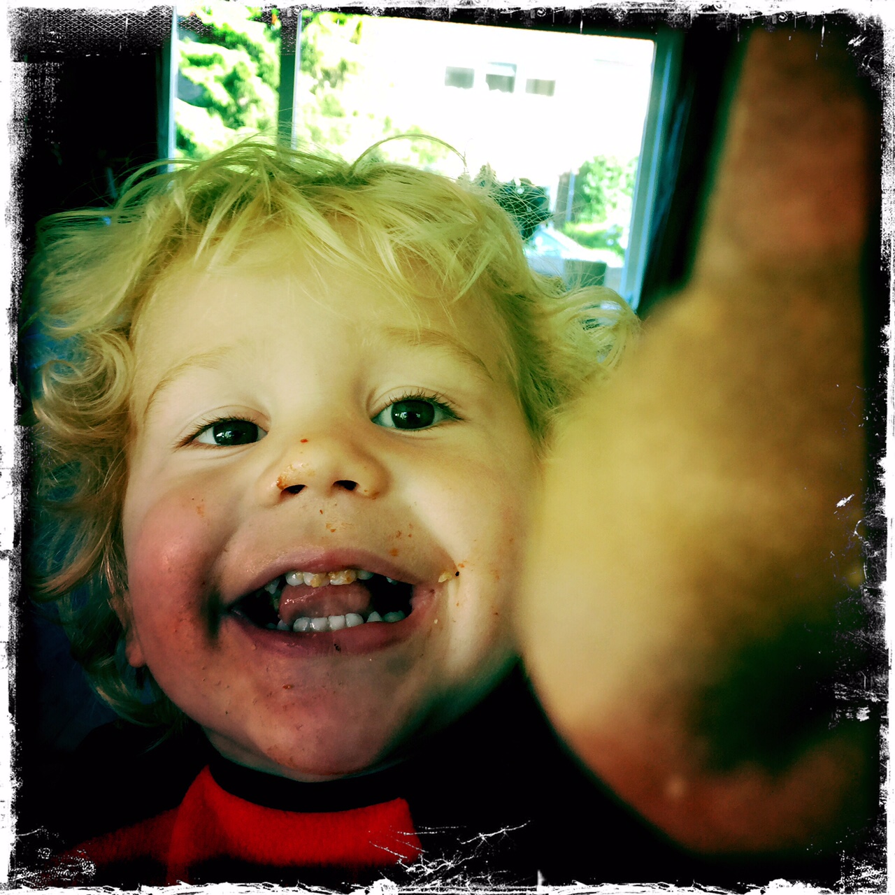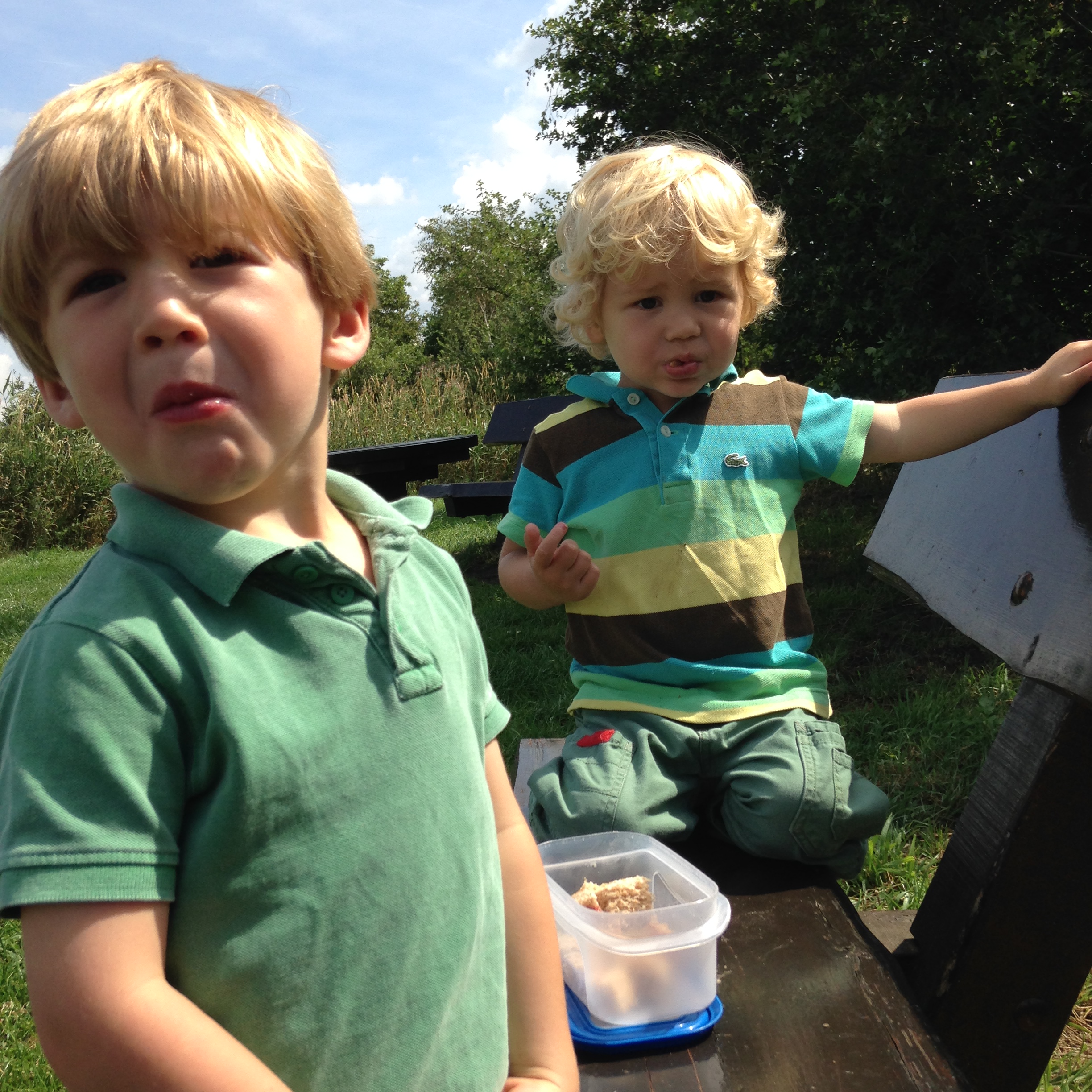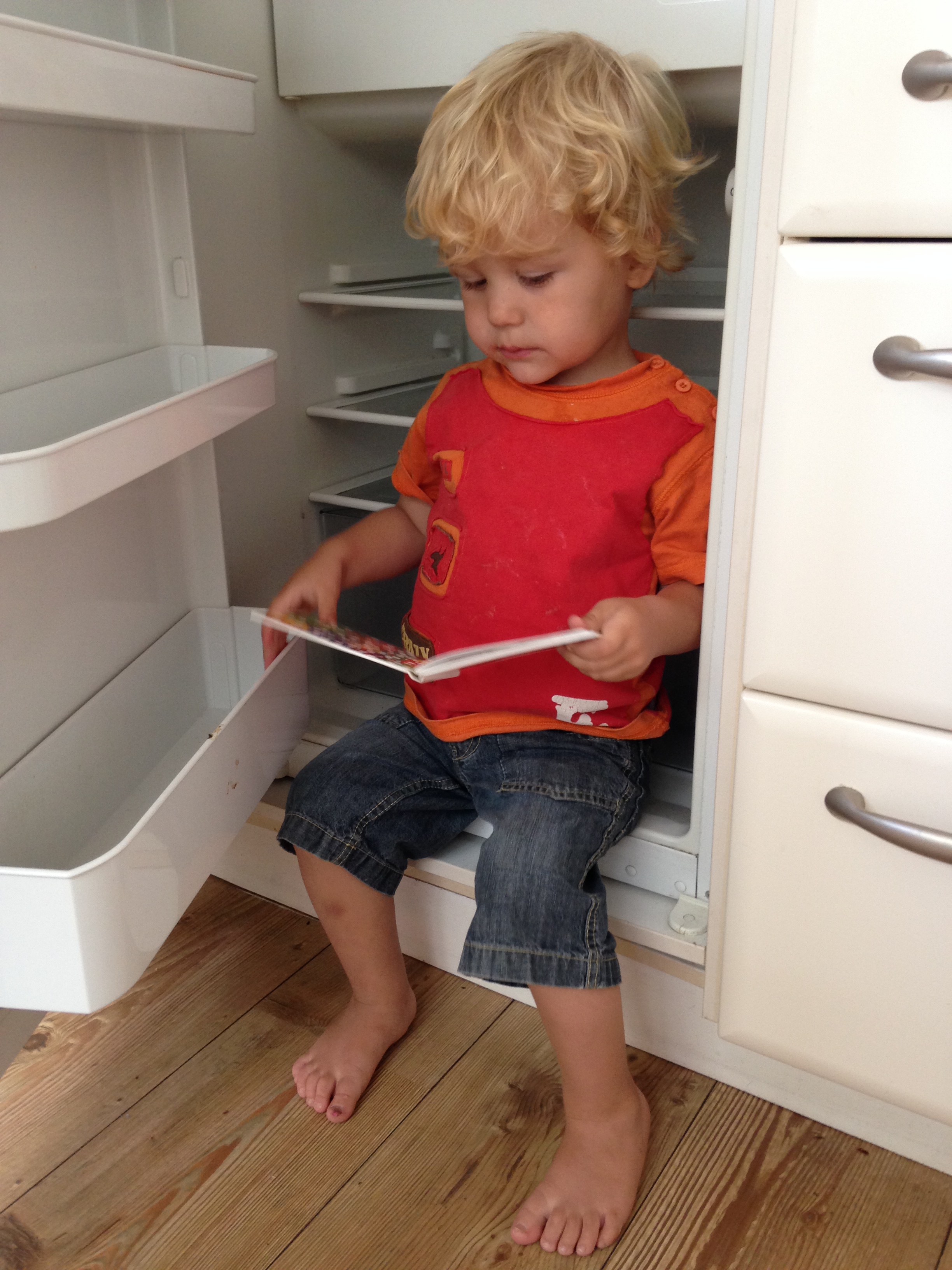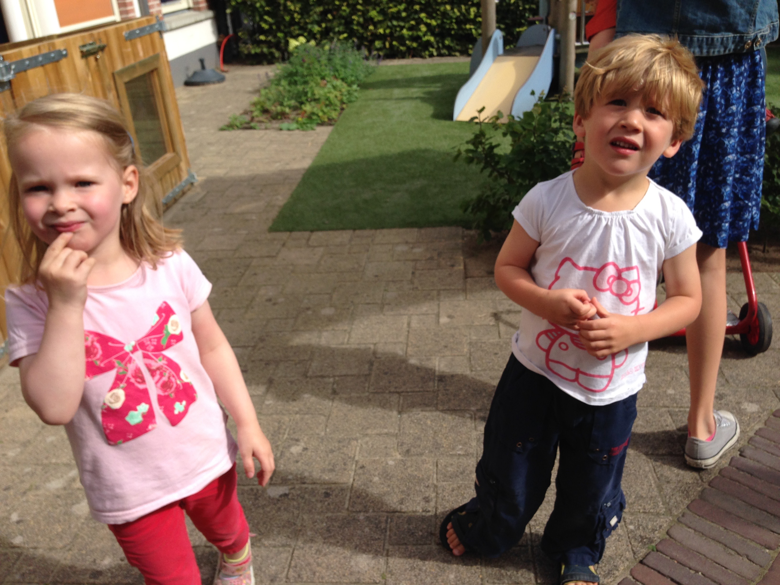 En toen was er na het heerlijke eten van mama (pastaschelpjes met kazen en tomaten, wat overigens een beetje een dieselefectje had: in het begin is het schrikken en onbekend, maar na 3 hapjes beseffen we dat het eigenlijk best wel heel lekker is, maar geven dit met tegenzin toe, en dan eten we alles in één keer op!