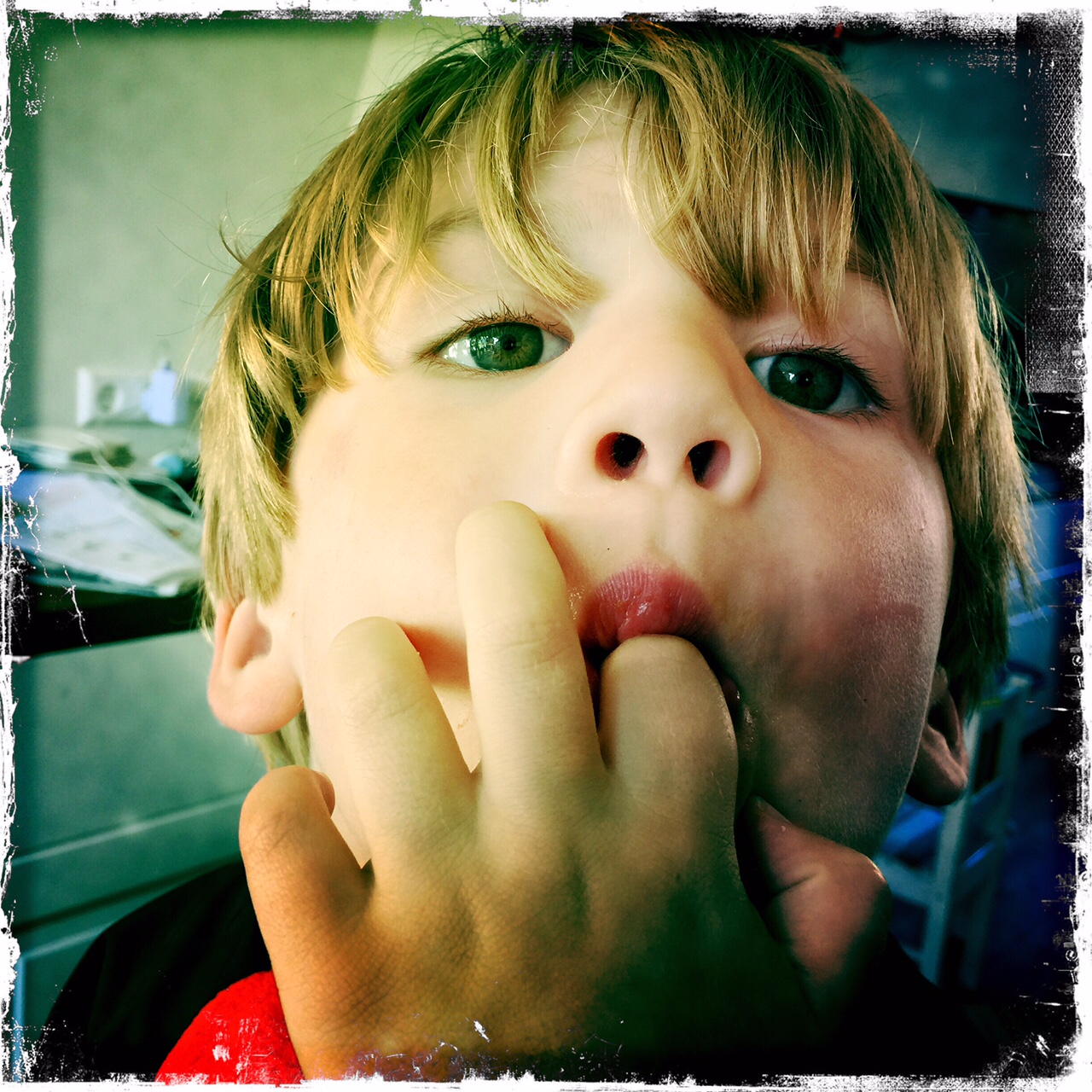 En ik word ook niet gezocht door de knuffelbrigade, of de vereniging van huilende-zigeunerkindjes-op-een-schilderij, of de stichting die zich zorgen maakt over het feit dat er over 1000 jaar geen blonde mensen meer zijn (wat overigens echt onderzocht is), nee, de foto’s zijn bedoelt voor onze paspoorten.