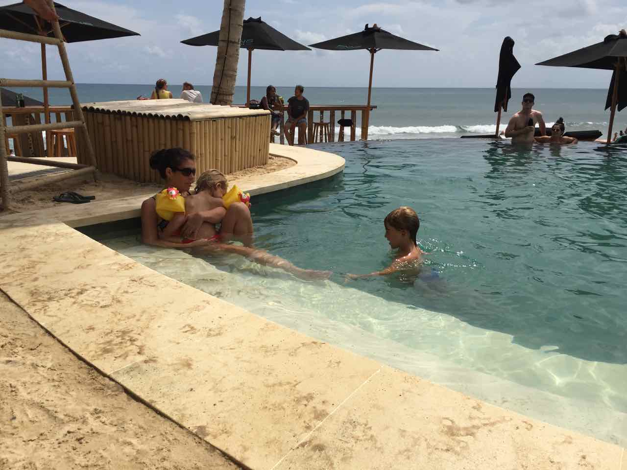 We hebben iets nieuws. Papa tilt mij (of Jay) op en dan nemen we een grote aanloop en springen heel ver in het water! We hebben ook een nieuwe opblaasdolfijn en eerst ben ik daar onderdoor gezwommen en toen ging ik er overheen springen met mijn handen eerst en zonder dat ik er erg in had…. was ik aan het duiken-zoals-grote-mensen dat doen!