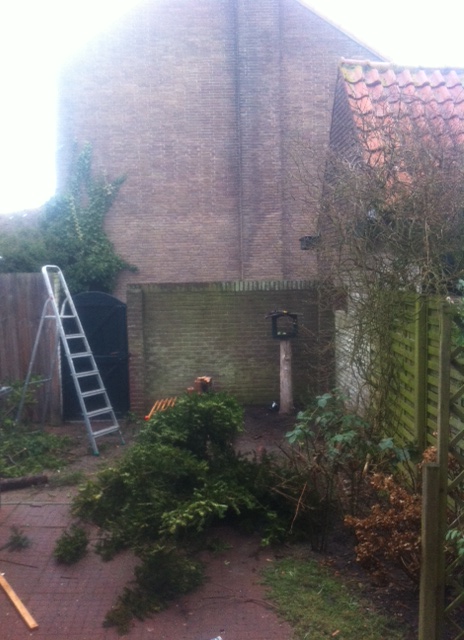 En het was een mooie dag! Siebe heeft de halve boom in de tuin omgezaagd en daar wordt iedereen blij van. Siebe omdat hij zagen leuk vindt en wij omdat we straks meer zon en licht in de tuin hebben. Zo zie je maar, win-win.