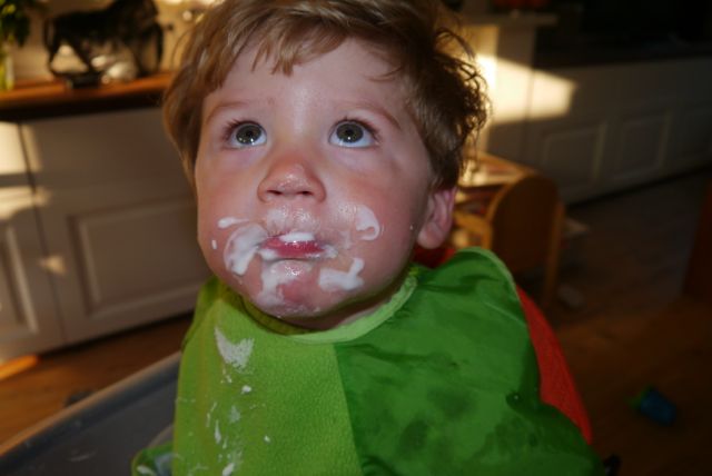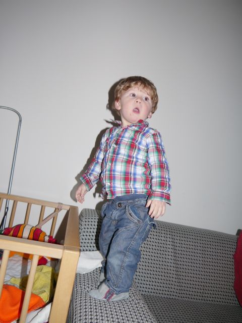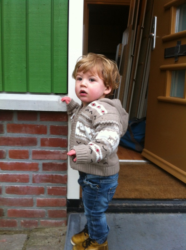 We waren ook nog even gaan boodschappen, papa en ik. En op een onbewaakt moment heb ik het wagentje volgeladen met appels. Ik dacht dat we die nodig hadden…. Papa dacht van niet dus nadat hij een foto heeft gemaakt, laadde hij ze uit en ik vond dat NIET LEUK en ging brullen. Totdat papa me op m’n rug op de wagen legde in ik stokstijf omhoog keek… Dat was het. Appels vergeten en de hardnekkige gedachte in mijn hoofd: Hoe kom ik hier af.