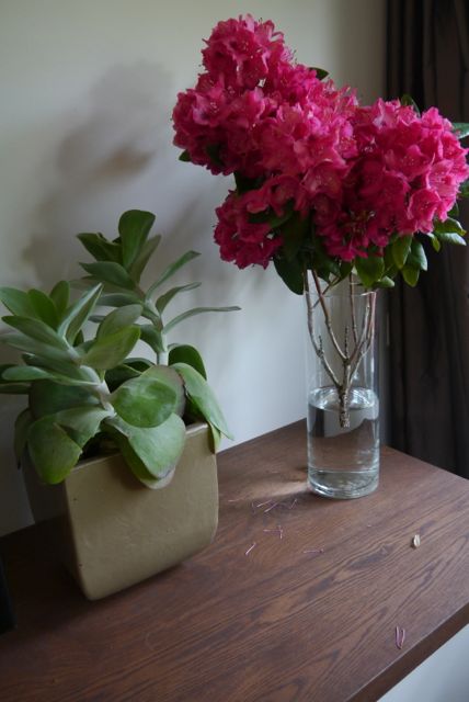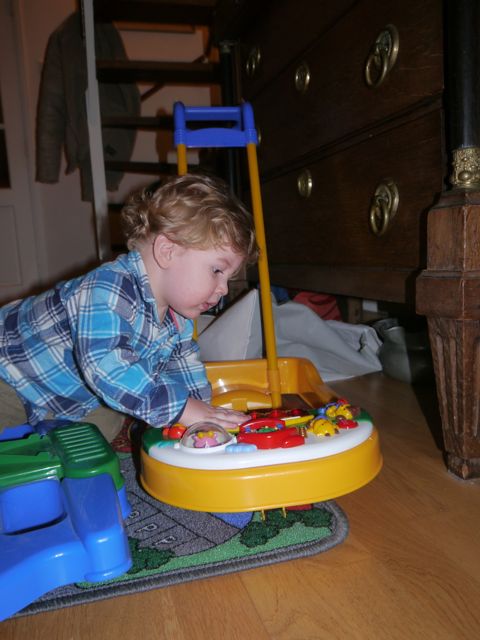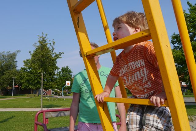 Ik had last van het springvirus (of vijfus of zessus, want ik tel voor ik spring). Dan klim ik op het met riet gevlochten, 18 jara oude krukje van Beppe en … spring er af, vijftienduizentweehonderddrieëndertig keer of zo. Samen met Nynthe, want die snapt de leukheid van het spel.