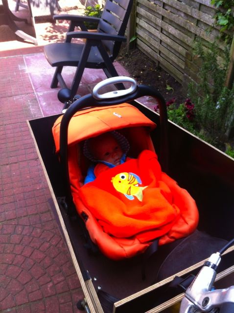 We zijn bij de kaasboer geweest en de fietsenmaker voor een babyschaal voor Jay. Dan kan hij naast mij in de bakfiets zitten en bij onze voeten alle handdoeken en ballen en insmeerspullen als we naar het strand gaan!