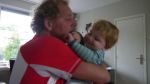 Papa ging uiteindelijk om een uur of 3 mountainbiken en toen lag ik al weer in m’n bedje. Ik ben een baby hè en ik bereid me voor op de rest van de dag en de komende week. Moet ik weer fris zijn. Zo gaan die dingen. Kort slaapje dat wel en toen gezellig in de box. Lekker spelen en babbelen met mama en dan sta ik natuurlijk rechtop en ineens: