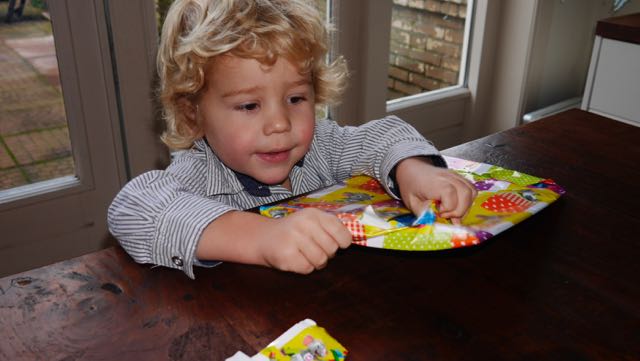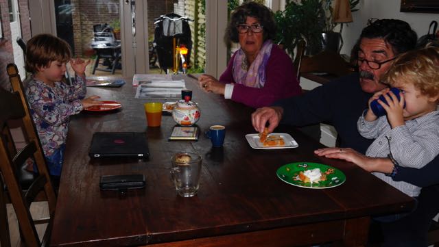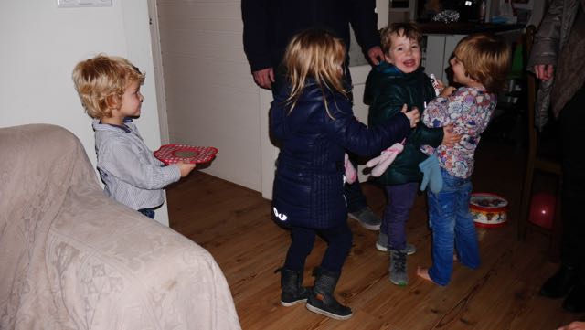 Dat, en lekker spelen in het hele huis! De blijdschap en de energie die vrijkwam op het moment Wouter en Julia door de deur kwamen is niet te geloven. Voor papa en mama en opa en oma en de papa en mama van Wouter en Julia is dat ook best wel makkelijk, want die kunnen gezellig kletsen en hapjes eten. Wij vermaken ons wel.