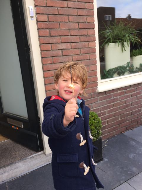 Over sterren gesproken, wij hebben die gewoon in onze hand (hoewel ik dat wel een beetje eng vind soms. Zomaar vuur en zo dicht bij! Dat is niet niks). Ik schrik me zo nu en dan een sprong naar de sterren als iemand een rotje aansteekt. Ik snap niet wat mensen n daar aan vinden. Zulke harde knallen. Daar kun je toch niks mee?